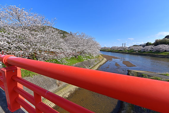 駐車場はどちらも日野橋付近にあるため、そこから下流側の弓ヶ浜大橋まで歩き、帰りは川の反対岸を戻ってくることで1周回ることができます。(下写真は2023年)