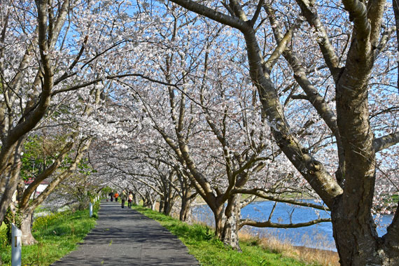 例年3月下旬~4月上旬頃が見頃になり、橋から橋までの1周約1.6kmほどの歩道を散歩がてらゆったりとした花見を楽しむことができます。