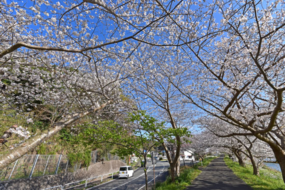 南伊豆町を流れる「青野川」の川沿いに咲く桜並木(湊の桜並木)です。