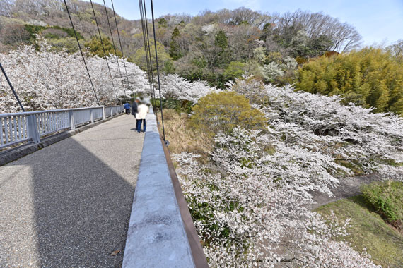 エコーブリッジ周辺の桜は「奥野ダムエコーブリッジ駐車場」が便利です。(下写真左:2025年)