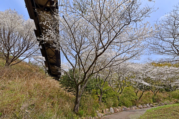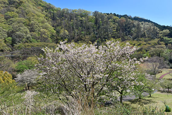 松川湖展望広場の周辺では、ソメイヨシノより少し早めに「大島桜」、少し遅めに「八重桜」などが例年見頃を迎えています。