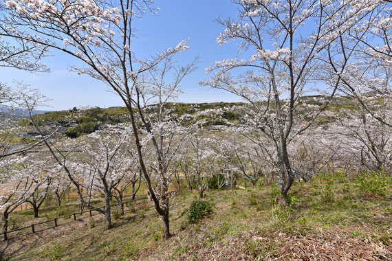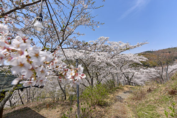 3月下旬から4月上旬頃にかけて楽しめるソメイヨシノのほかにも、早咲きで知られる河津桜・寒桜、枝垂れ桜など、約270本ほどの桜の木があります。