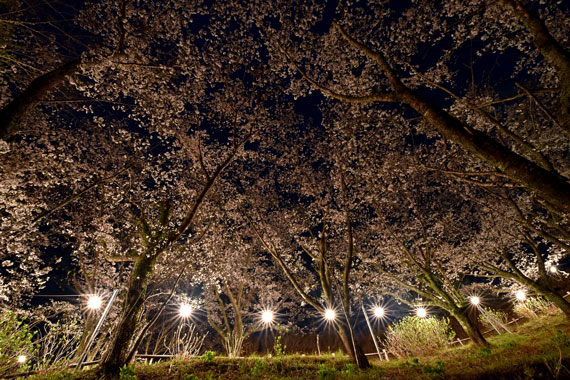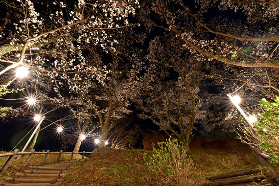 伊豆市にある六仙の里は、中伊豆エリアの桜スポットとして知られている公園で、例年、見頃の時期には夜桜のライトアップも行われています。