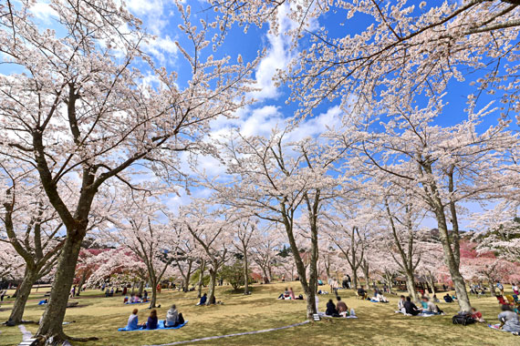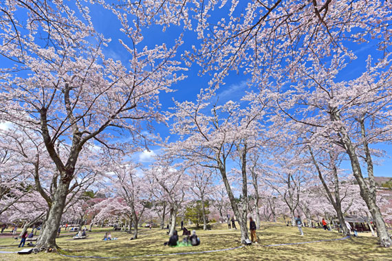 広めの駐車場もあるため、ちょっとした立ち寄りの観光客はもちろんのこと、芝生の公園で花見をゆっくりと楽しむ人たちも多く、桜の時期は特に賑わっています。
