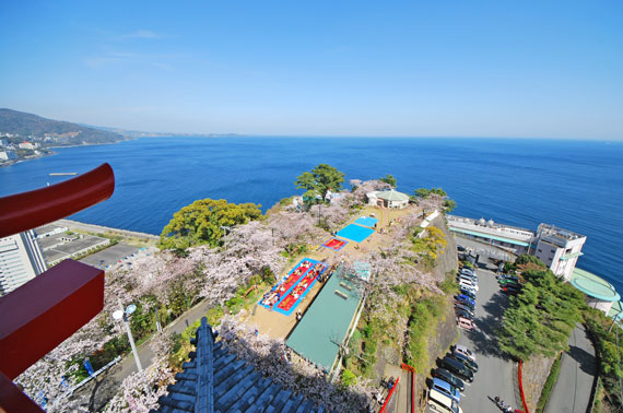 海抜160mにある熱海城天守閣からは熱海市街や熱海港、相模湾を一望できます。また、熱海市街の夜景を眺める夜景スポットとしても知られています。