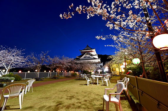 例年、熱海城桜まつりも開催され、イベントや各種出店などもあり、5分咲き頃からは庭園にある約50本ほどの桜のライトアップも行われます。
