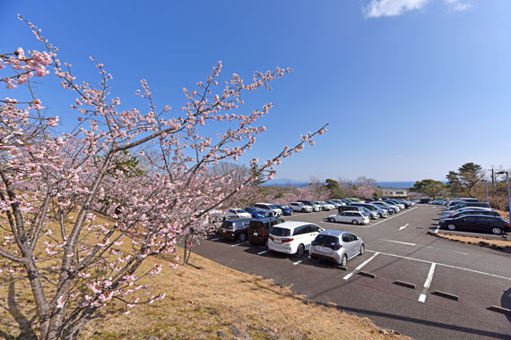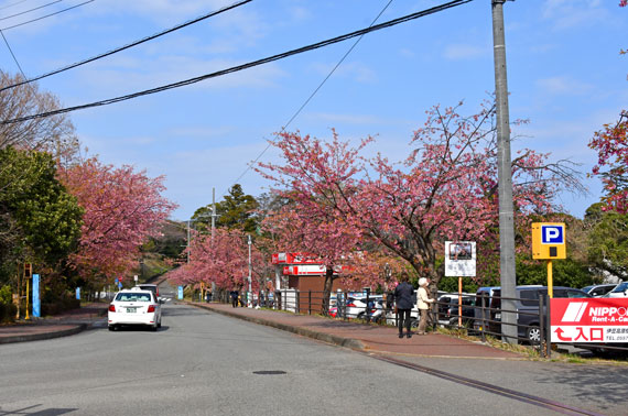 駐車場は主に伊豆高原駅付近にある有料駐車場となっており、そこから徒歩数分で桜並木の道路があります。