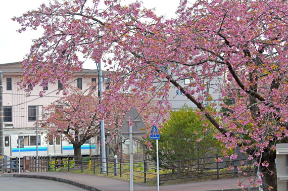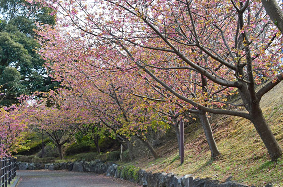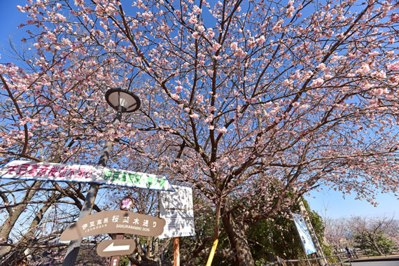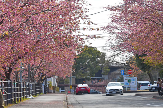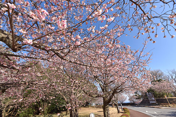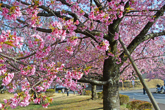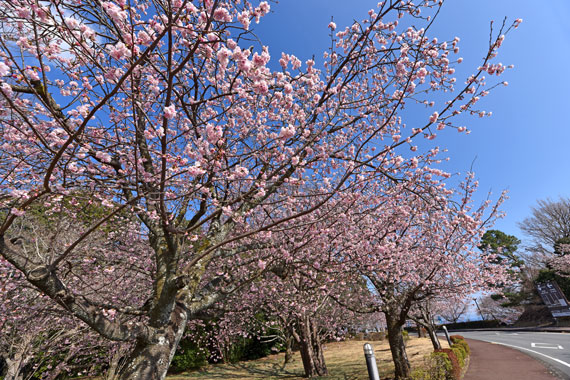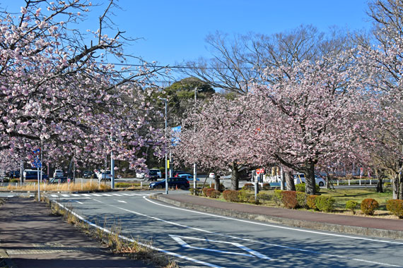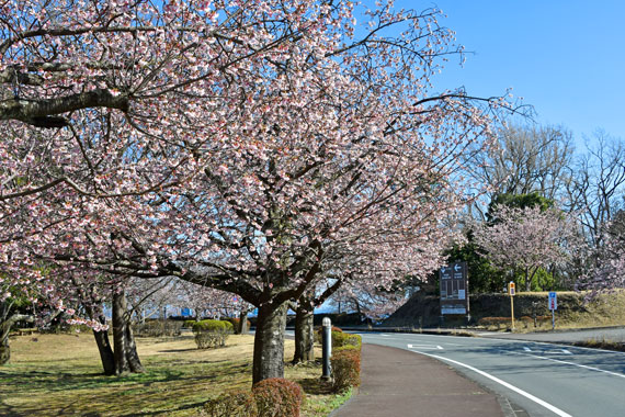 また、ソメイヨシノよりも少し早い時期の3月頃には、伊豆高原駅から桜並木入口付近にかけて濃いピンク色が特徴的な「おおかん桜」も約150本ほど咲いています。