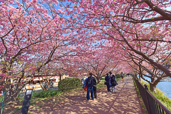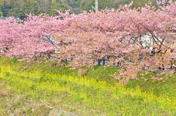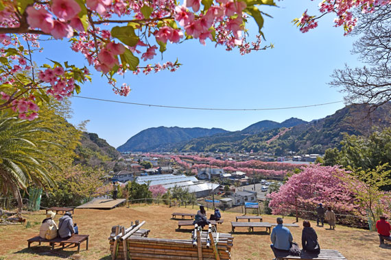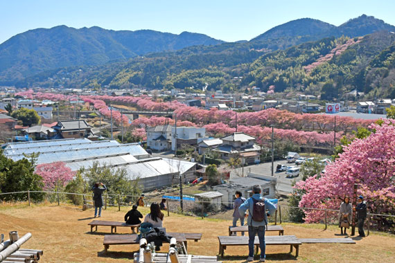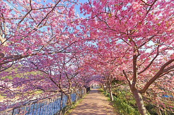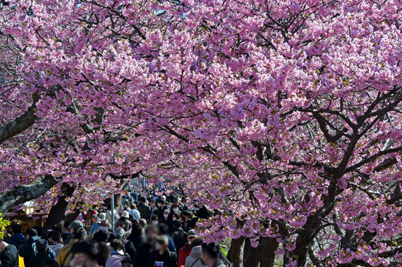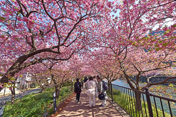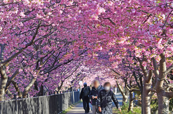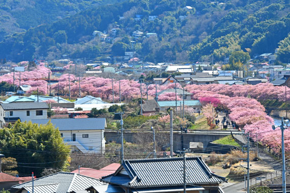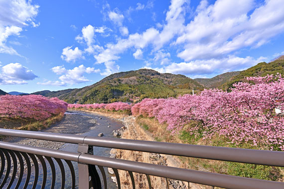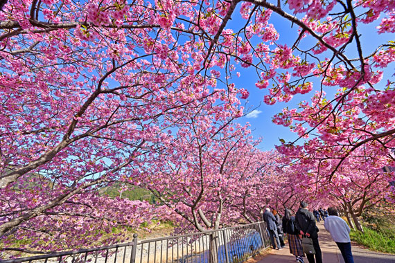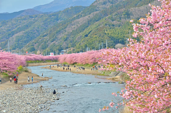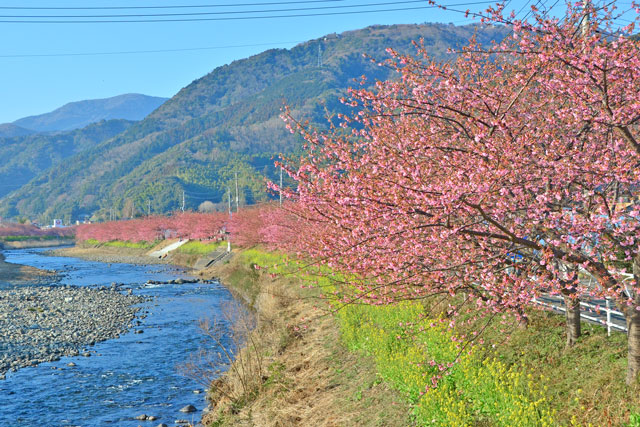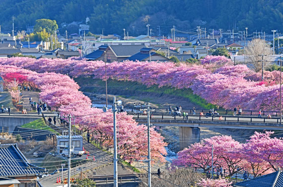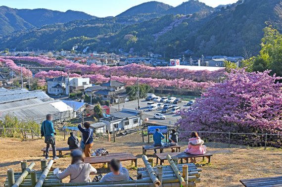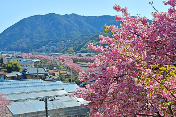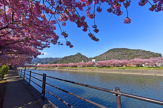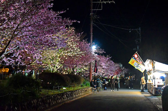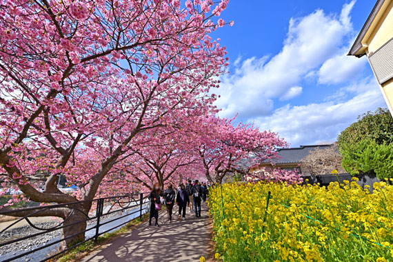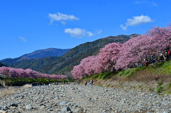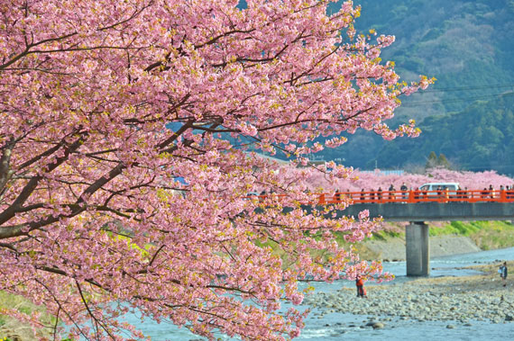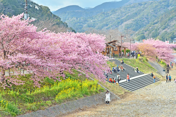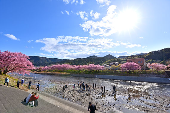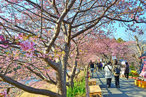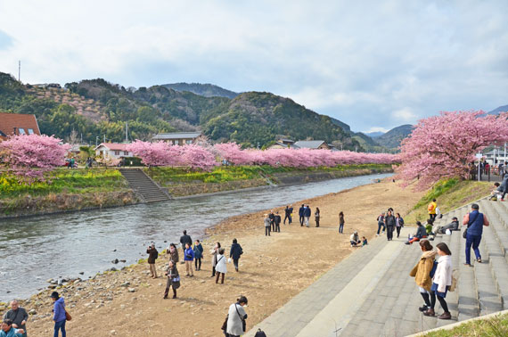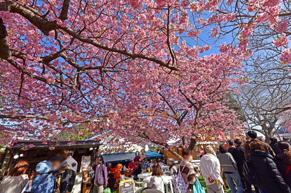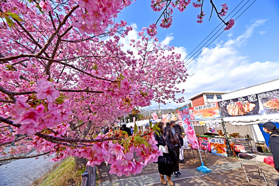 例年、河津桜が開花している時期の約1ヶ月の間に「河津桜まつり」も開催され、露店なども数多く出店して賑わっています。