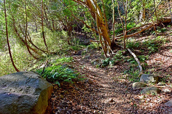 「河津城址公園」は河津町を一望できる山にありますが、徒歩約25分のハイキングコース(下の写真参照)を歩くため、歩きやすい靴とそれなりの体力も必要になります。