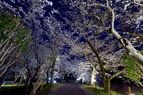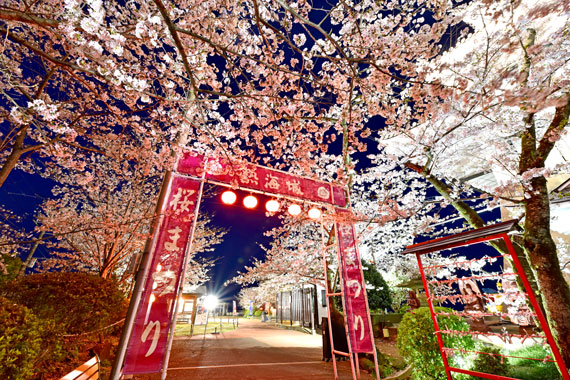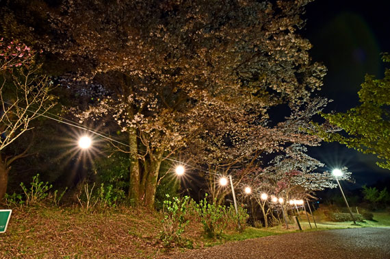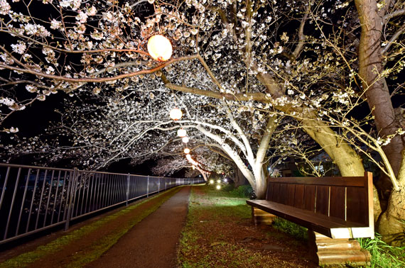 例年、3月下旬~4月上旬頃にはソメイヨシノ約40本ほどがライトアップされ、静かに夜桜を楽しめる穴場的なスポットになっています。