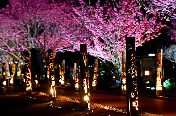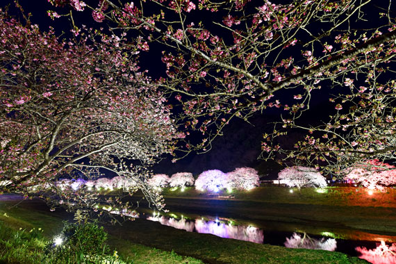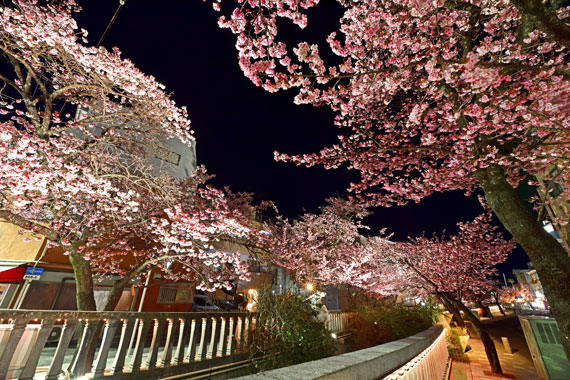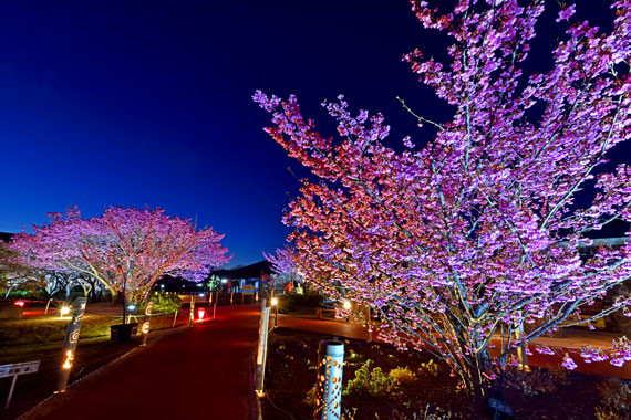 日本で最も早咲きの桜とも言われる「あたみ桜」のライトアップです。