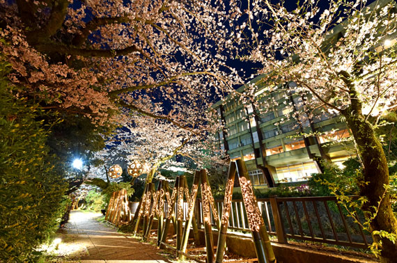 例年、枝垂れ桜やソメイヨシノが見頃を迎える3月下旬~4月上旬頃には、夜桜のライトアップも行われています。