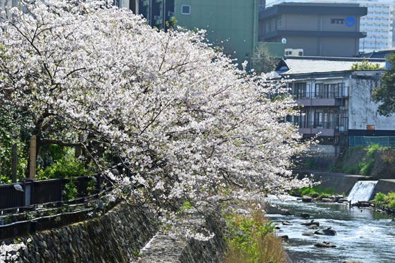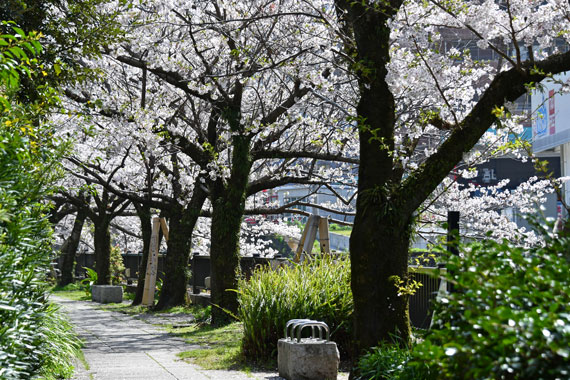 松川遊歩道は、伊東市の温泉街を流れる松川沿いにある遊歩道で、春には桜スポットとして知られています。