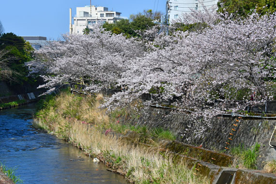 桜の本数はそれほど多くはありませんが、桜のトンネルのような小径の雰囲気や、川にせり出した桜の枝から舞い落ちる花びらが川を流れている様子なども素敵です。