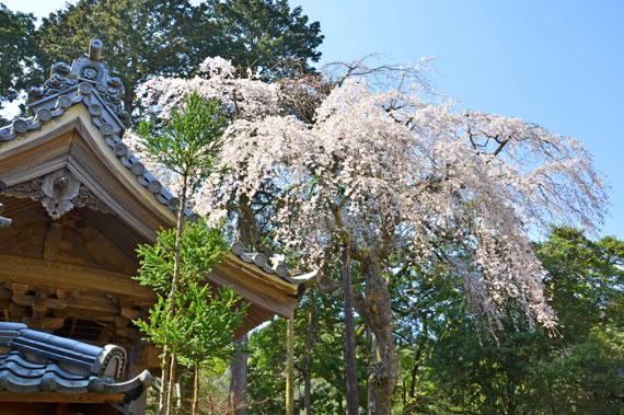 伊豆の中でも有名な一本桜(しだれ桜)として知られていて、山あいの静かな報本寺の前庭で優雅に佇んでいる姿がとても印象的です。