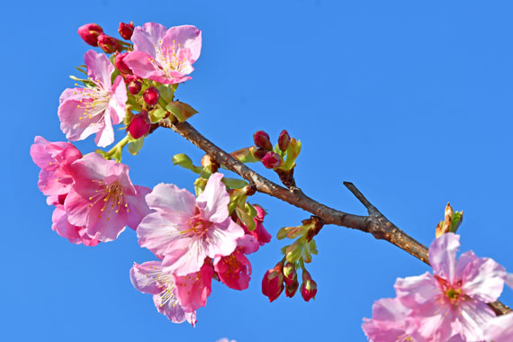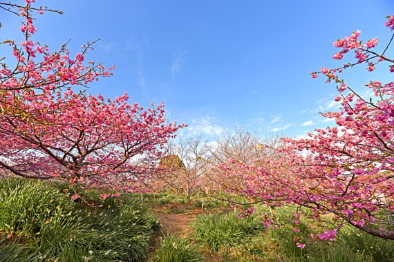 みなみの桜と菜の花まつりでメインとなる桜は、早咲きで知られる濃いピンク色の「河津桜」です。