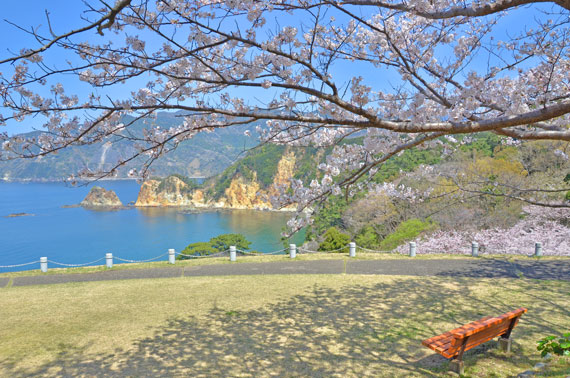 海と景観の美しいロケーションが人気の黄金崎公園の桜です。西伊豆の景勝地としてドラマロケ地でも使われるほか、ダイビングスポットとしても知られています。