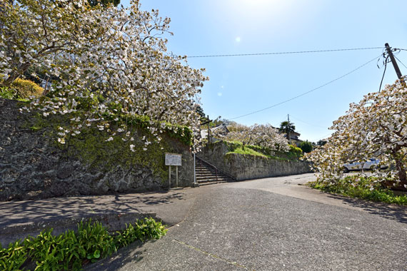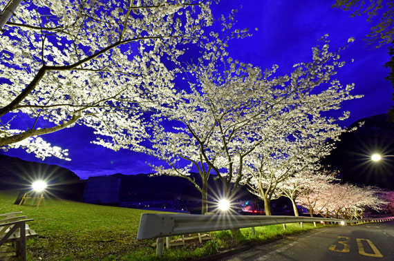 例年「黄金崎さくらまつり」として桜祭りのイベントが行われるほか、公園入口の道路沿いにある約10本ほどの桜もライトアップされ、数少ない西伊豆の桜名所になっています。