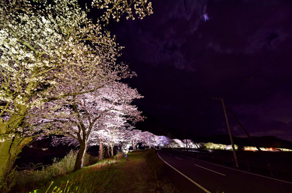 那賀川にある桜並木はかなり長い距離にわたって桜が並んでいるため、例年、上流側(同町にある「大沢の桜」など)の方が開花が早く、上流から下流へと進んでいく傾向にあります。
