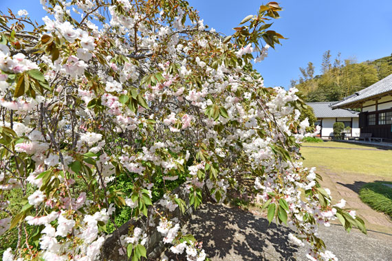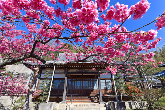 万福寺では土肥桜の古木を楽しめ、他のスポットよりも少し早めに見頃を迎えます。