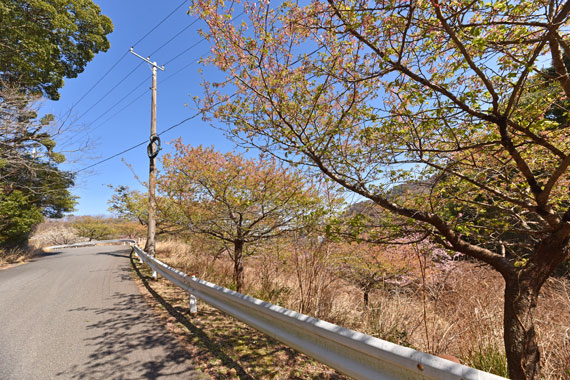 伊東市と伊豆市中伊豆を結ぶ「中伊豆バイパス(県道12号)」の道路沿いにあり、駐車場もあるため立ち寄りやすい桜スポットになっています。