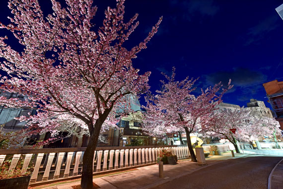 また、例年、1月上旬から糸川の遊歩道沿いを中心に桜まつりイベントが行われ、期間中は夜桜のライトアップも行われています。