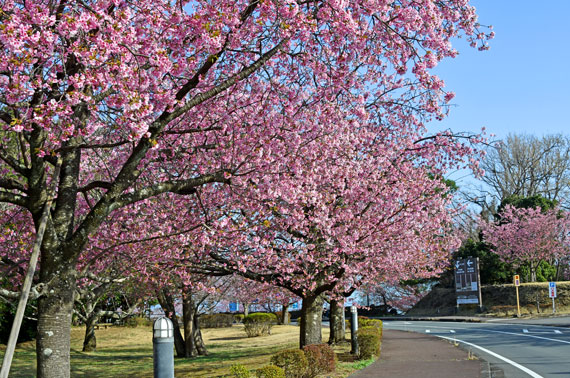 また、ソメイヨシノよりも少し早い時期の3月頃には、伊豆高原駅から桜並木入口付近にかけて「おおかん桜」も咲いています。