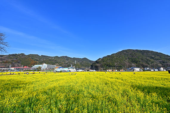 また、河津桜だけでなく、広い休耕田に咲く一面の「菜の花畑」もとても人気で、例年、菜の花結婚式なども行われています。