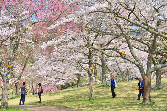 一般的なソメイヨシノの他にも数多くの種類が植えられていることから、1年のうちの長い期間で色々な種類の桜を楽しむことができ、まさに桜のテーマパークとも言える桜スポットです。