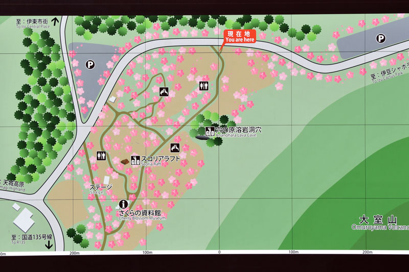 主には「さくらの里の入口付近」と「さくらの里と大室山リフトの間」にある駐車場が便利です。(下写真は2024年)